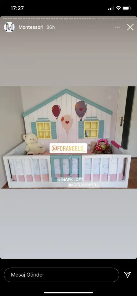 İpek’e oda yaptırmadık ama Ela’nınkini görünce üzüldü biraz. Öyle olunca montesorri yatak istedim. Ekteki görseldeki gibi olacak.