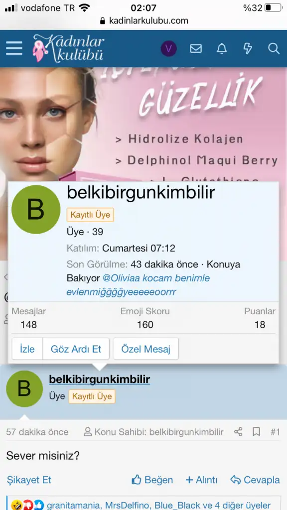 Oliviaa önde gidiyor şekerim, ben bu maçı kaybederimHanginizin adına açılan konuya daha çok yorum gelirse ona pro üyelik hediye gelsin bariBir işe yarasın en azından