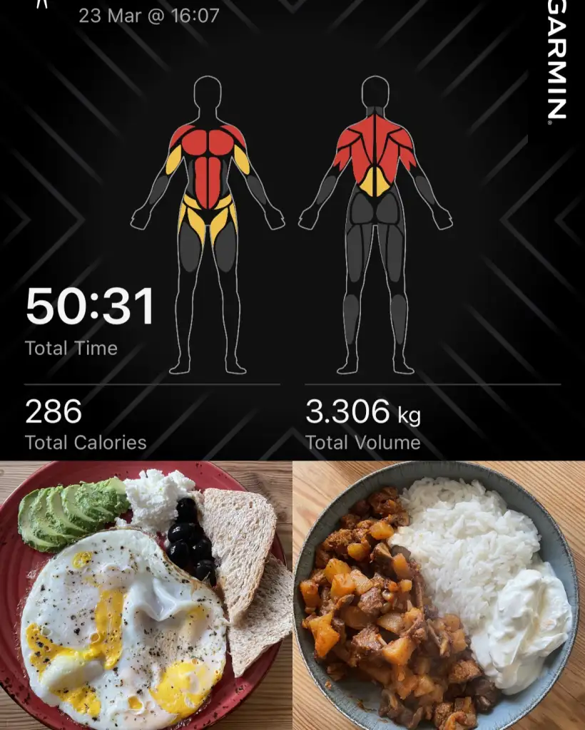 Üst vücut antrenmanı yapıldı, 29 kg pendlay row um var Egzersiz öncesi fıstık ezmesi ve muz da yedim. Bugün protein az oldu. Dün sushiyi fazla kaçırdım, iki cheat day yapmış oldum. ikinci haftaya bomba gibi başlıcam. Cuma ve cumartesi hariç kalori açığı verdim, temiz beslendim.