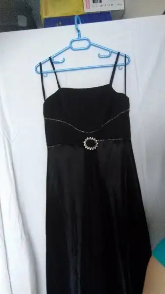 Yukarıdaki elbise 30 liradır önündeki kare tokanın bir taşı düşmüştür 2 kere giyilde 38_36 beden uyumludur normalde 50 lira fakat hem tokanın bir taşı eksik hemde etek uçlarında çok ufak lekeler var kuru temiLemeyle çıkar arkadan çaprazdır askıları