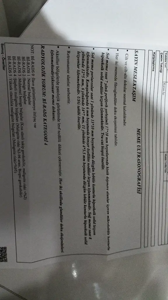 kaşıntıyla gittim ben doktor alay geçerek cildiyeye gitmen lazımdı genel cerraha değil dedi gene ultrason verdi lezyon çıktı 3 veya 4 tane sonra başka doktorlara gittim fibroadenom önemsiz dedi iyi bi doktor var ananeme de kanseri atlattı o doktor bulmuştu gittim ameliyat verdi bi tNesini aldı ağrısız ameliyat 1 gün yattım çıktım dikiş dahi atmıyolar fazla büyük değilse yara patoloji sonucu tümör dedi doktora gittim göstermeye bidaha ilaçlı mr dedi ultrason istedi ultrason sırası eylüle verdi ama mr sonucunu yarın göstermeye gidicem bende