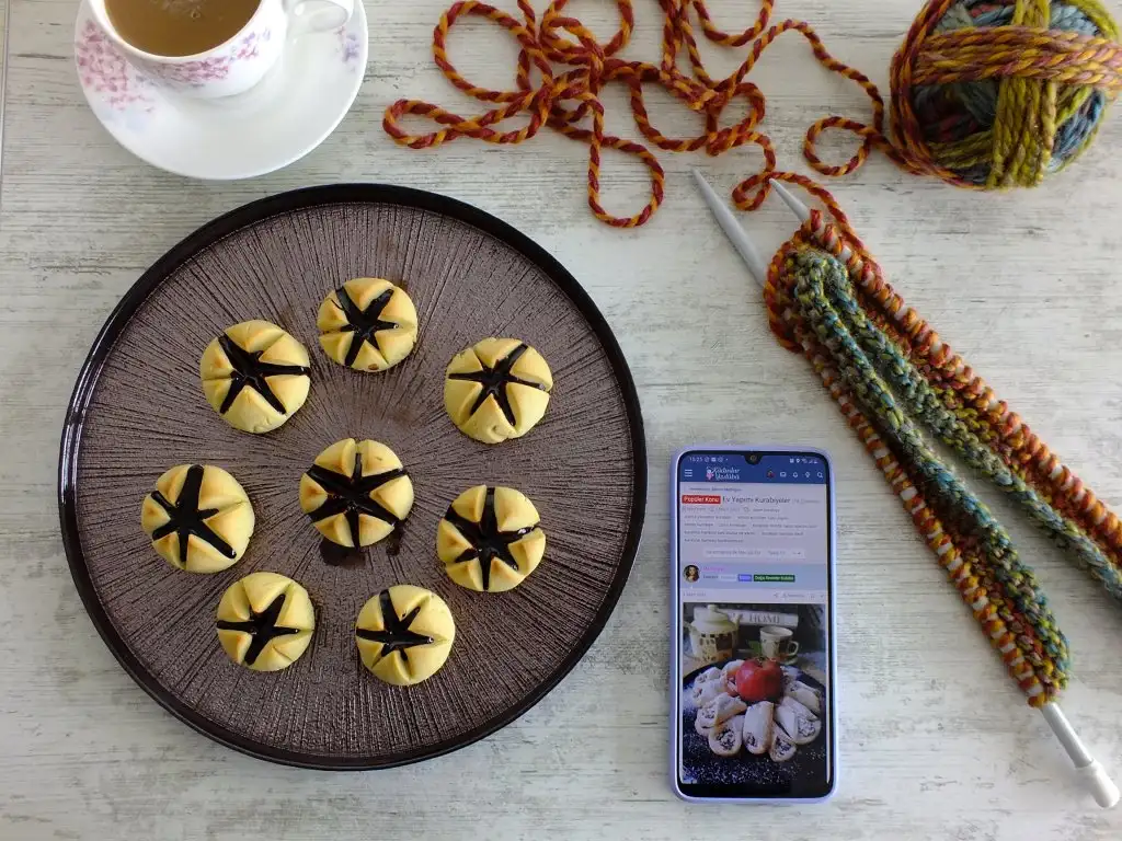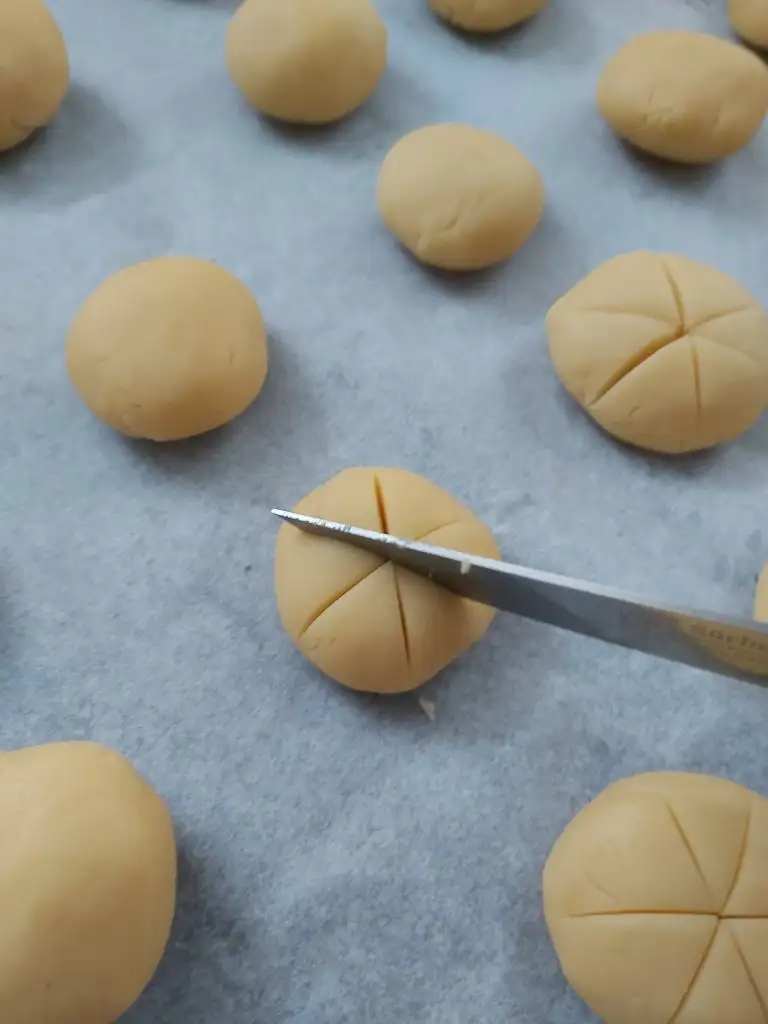 Unu da katıp yoğuruyoruz. Tepsimize dizip 6 parçaya ayrılacak şekilde üstten üstten hafif kesiyoruz.