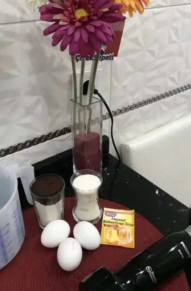 2 Yemek kaşığı kakao ve un (Su bardağına kakaoyu koyun,üzerine tamamlayacak kadar un ekleyin. Toplam 1 su bardağı olacak)