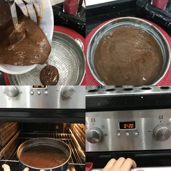 Karışımı 26 cm lik kelepçeli düz kalıbımıza döküyoruz.. 180 derece ısınmış fırınımızda yaklaşık 20 dakika kadar alt üst pişirme ayarında pişiriyoruz..