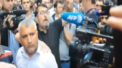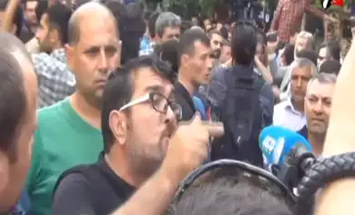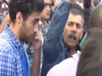 Ekose gömlekli sakalli genc yine yabanci basina yalan demec veren ve halki kiskirtan Isa Yaldiran i ve Ethem Gülmezi durdurmaya caliyor..