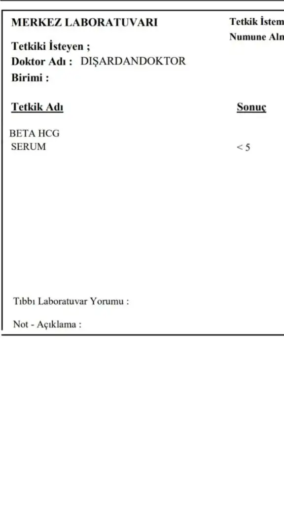 Eklentinize baktım ben ama sonucunuz 5 ten küçük olarak çıkmış negatif sonuçtur bu ..gebelik varsa önce kan da çıkar .ama siz baktırın birdaha istersrnizMrb 17 mart yumurtlama günümdü 1 nisan adet günüm 27 martta idrar testi yaptım sonuc böyle cıktı pozitif sandım bugun kan testi yaptırdım sonuç >5 bu cıktı negatif yani ne demek oluyo bu