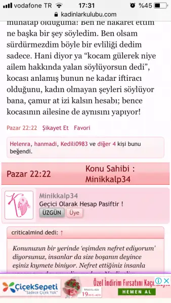 Ben o konuyu yorum yazmadan okumuştum "hem fikir istiyor hem herkese sataşıyor" demiştim iyice abartılmış o iftiralar nedir:olamaz: