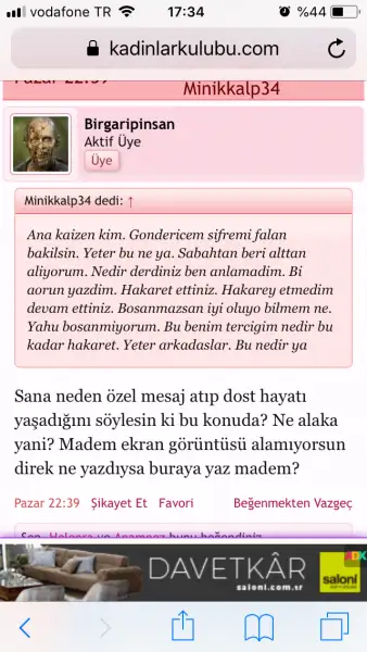Size “dost hayatı yaşıyorum” diye mesaj atan üyenin kim olduğunu belirtir misiniz?