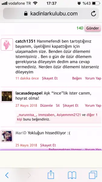 Ya bana gonderttirme aimdi hepsini. Isim isim yazarim cikar burda soyler hepsi. Evli bile.degilain. doat hayati yasiyosun. Dertlerini yaziyosun millete aonra insanlara hakaret ediyosun. Bana yazma. Senden bi fikir beklemiyorum