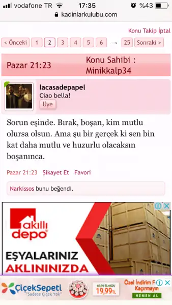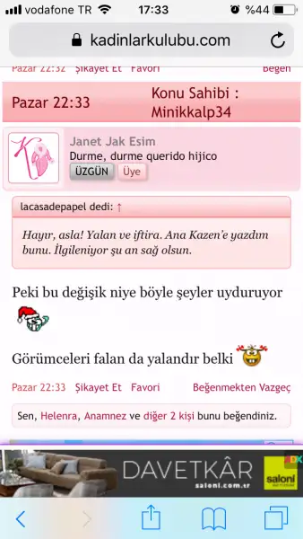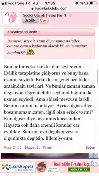 Size “dost hayatı yaşıyorum” diye mesaj atan üyenin kim olduğunu belirtir misiniz?HEPİNİZ HAKLISINIZ HANIMLAR, BENİM SON GÜNLERDE MORALİM PSİKOLOJİM ÇOK BOZUK, SÖYLEMEMEM GEREKEN ŞEYLERİ SÖYLEDİM, HAKARET ETTİM VE ÜZERİME DÜŞMEYEN YORUMLAR YAPTIM. @lacasadepapel SİZİNLE HİÇ ALAKASI OLMAYAN BİR MEVZUYU SİZİNLE İLGİSİ VARMIŞ GİBİ SÖYLEDİM. HAKLISINIZ ÖZÜR DİLERİM. DAHA AÇIK NASIL ÖZÜR DİLEYEBİLİRİM