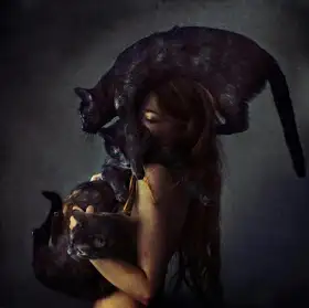 Camda cizilimiydimalesef ki hayır. siyah beyaz çizme bir resimdi. genç bir kız çizilmiş kedi kızın vücudunu askılı bir bluz gibi kapsıyordu. kedilerle kadınlar arasındaki zerafeti anlatıyor gibiydi. siyah kedi kadını olduğundan da ince gösterdiği için hep bir sebebiniz var diye temsili anlatıyordu.