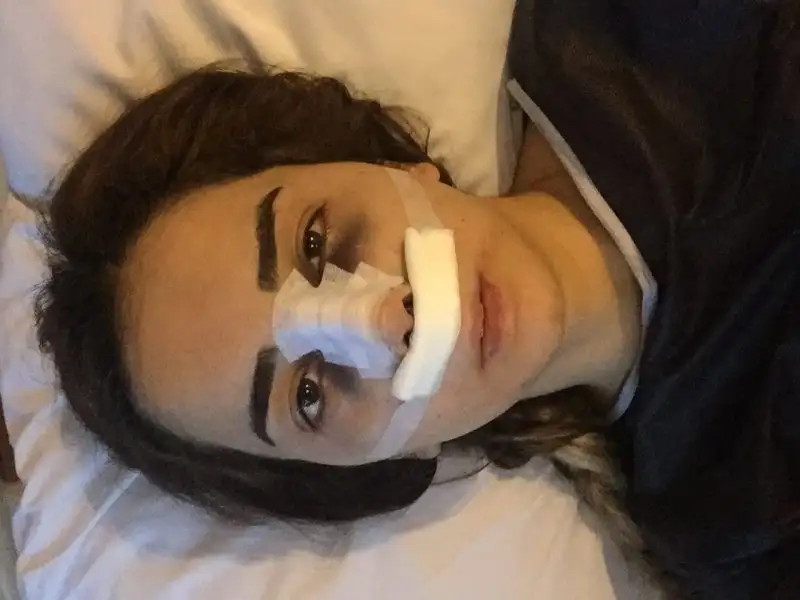 Şuan 10 saatlik burnum:) nefes almakta çok sıkıntı çekiyorum uyuyamadım o yüzden fakat bulantı kusma ağrı olmadı çok şükür hatta morarma bile çok az. Pazartesi alınacakmış tamponlarım o zamana kadar böyle ağızdan mı nefes alıcam hep16.günümdü evet alabiliyorum çok şükür. 2 gün önce sol burun deliğimden pek alamıyordum ama doktor muayenede cok fazla kabuk olduğunu söyleyip orayı temizledi şuan alabiliyorum nefes.