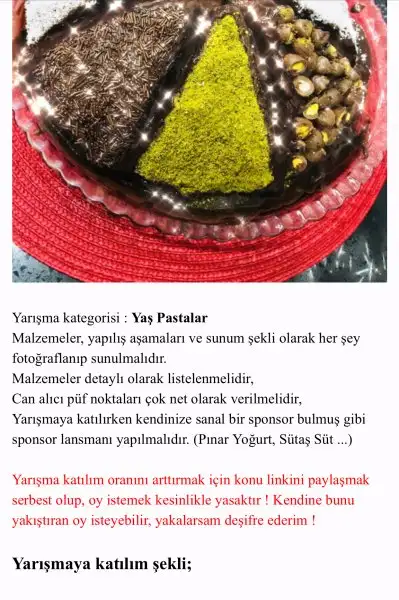 Ben paylaşsam olabilir linki de yarışmaya katılan biri kendi arkadaşlarıyla sohbet ettiği bir topikte paylaşsa şık olmaz.Mutlaka yarışmaya katıldığı ortaya çıkar,oy vermek zorunda hissedebilir diğerleri arkadaşım diye.