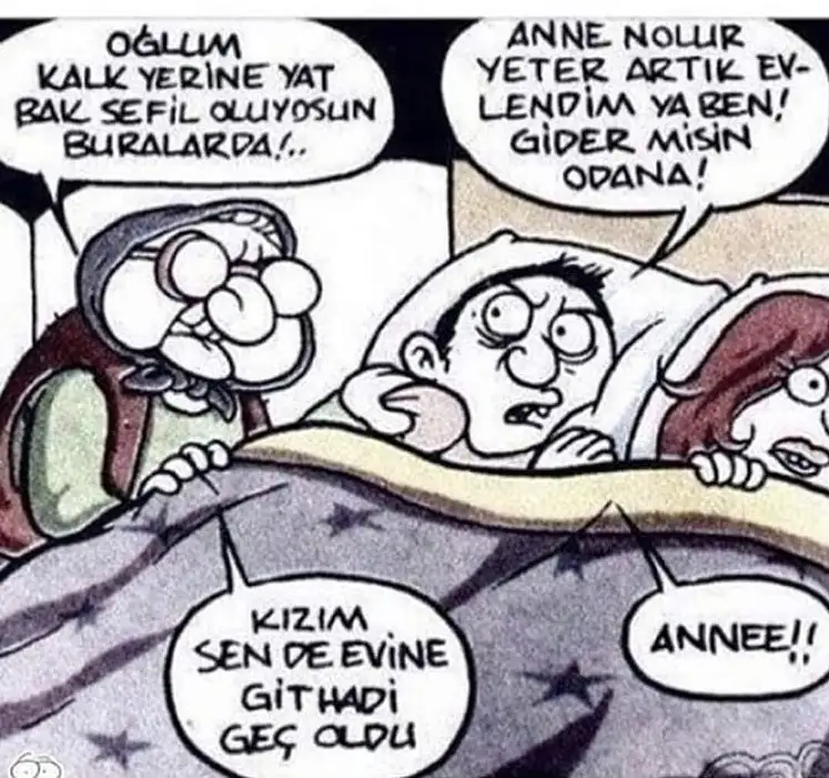Bu çok üst versiyon artık.Klasik oğlunu gelininden kıskanan kv hareketi. 8 senedir alışamamış daha bunun bir üst modeli arkadaşımda var gece gelip ortalarında yatıyormuş.