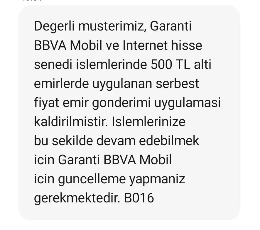Ay inşallah olur bende garanti bankası kullaniyorum. Hatta bugun 150 tl lik alınca yine daha pahalıya aldığım için kendi kendime söylenmiştimBana böyle bir mesaj geldi. Sevindim valla,doğru bir karar olmus.Eki Görüntüle 2946554