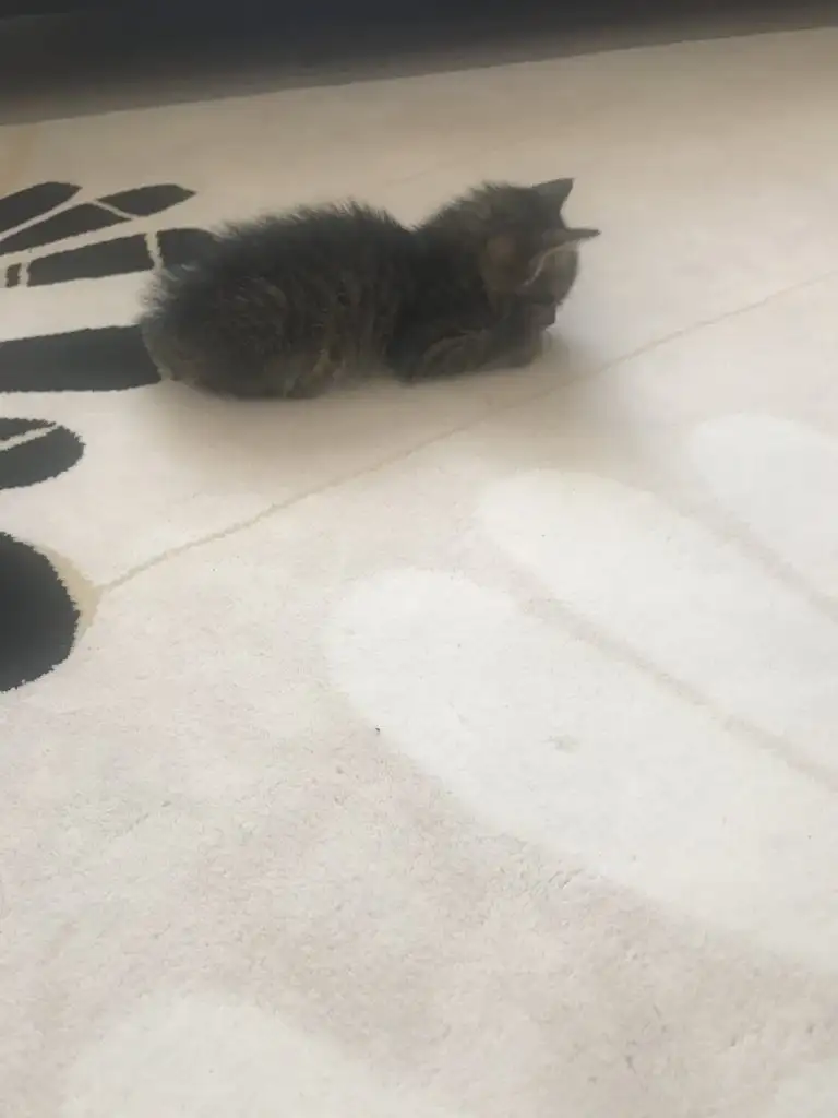 Eve aldık şimdi, sabah veterinere götüreceğim. Ama şimdi ne yer ne içer bu hayvan. Çok halsiz, iki üç dakikada bir uyuyakalıyor. Anneleri yok, bir haftadır sokakta olduğunu söylüyor kızım. Bir kardeşi daha varmış o ölmüş. Bu da ölmesin diye perişan oldu.