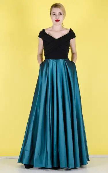 Aşağıya doğru geniş mı istiyorsun eteği böyle? Kilolu göstermez mı bu model?
