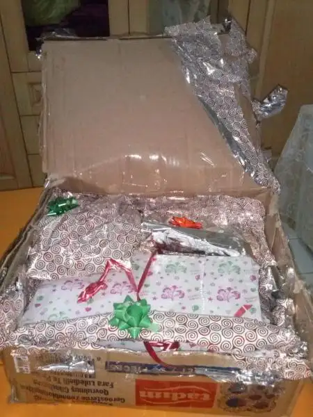 hediyelerin üstüne yapıştırdığı nazar boncukları ayrıca hoşuma gittiçok severim öyle nazar boncuklu süsleri gözlerim parladı görünce
