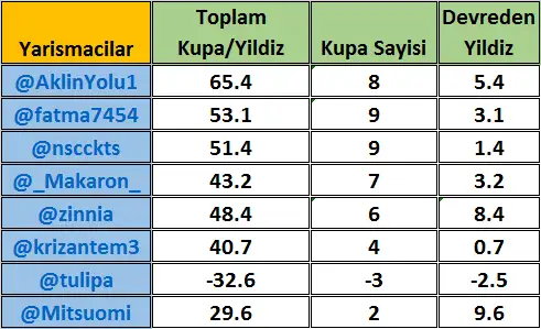 Aramiza 5 yeni yarismaci katildigi icin 2. yarismayi erken bitirip , 3. yarismayi erken baslatiyoruz. 3. Yarisma tam 7 hafta suruyor.