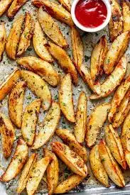 wedges diye geciyor, soyle firina atiyorum sifir yag. kitir kitir oluyor. Bir tabak yeterli. Kekik , baharatta kullanabilirsin. Ketcap i bosver.