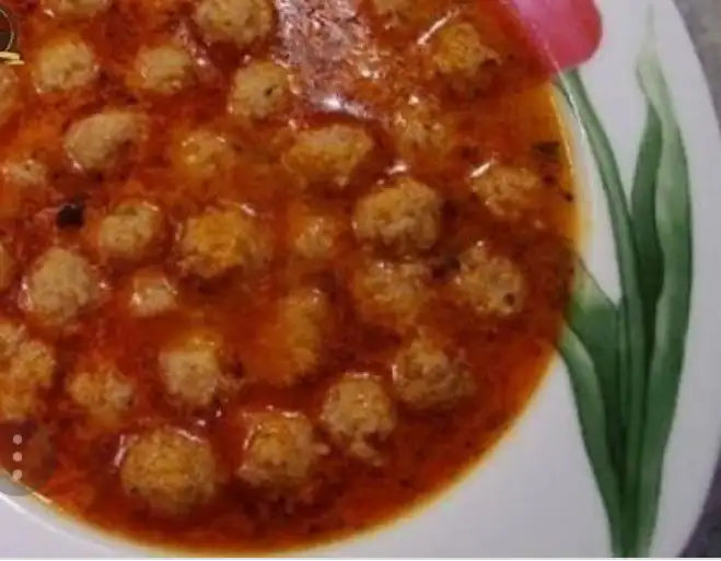 Eki Görüntüle 2155447 sulu köfte; bir tencereye yağ konur, ardından salça ve su eklenerek kaynamaya bırakılır. Derin bir kasede az yağlı kiyma, rendelenmiş kuru soğan, bulgur maydonoz ve baharatlar karıştırılıp yoğurulur ve misket büyüklüğünde yuvarlanıp kaynayan salçalı suya atılarak pişirilir.