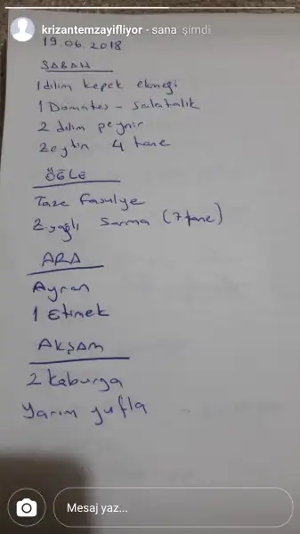 Ya ben doymadim hindiba ile de bir avuc kabak cekirdegi ve badem yedim. Gun bitti.