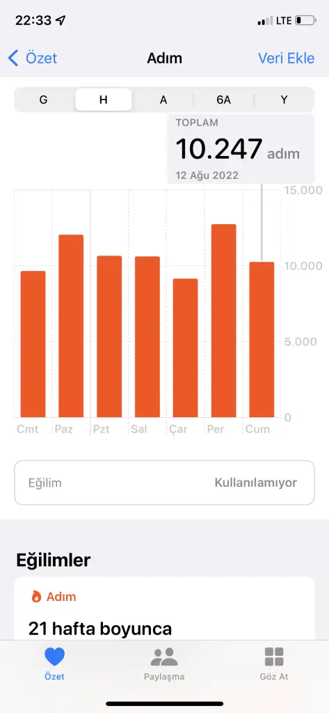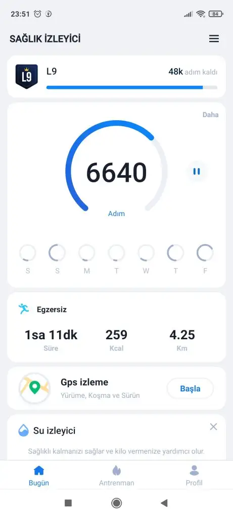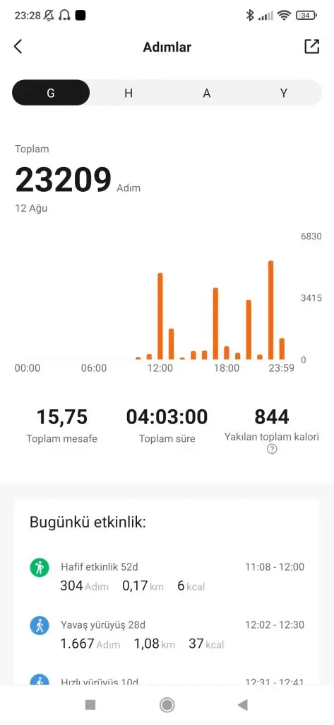 Bugün işe geç gidip erken döndüğüm için adım sayım düşük. Yarın telafi edeceğim 8222 adım, yatana kadar 8500 olur