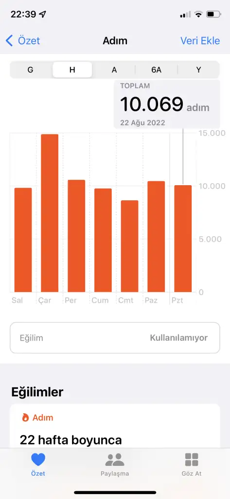 Adımlarım ilk kez 10000 e tamamladım devamı gelsin inşallah geçen sene 15 20 leri buluyordum yaa