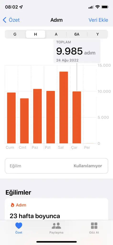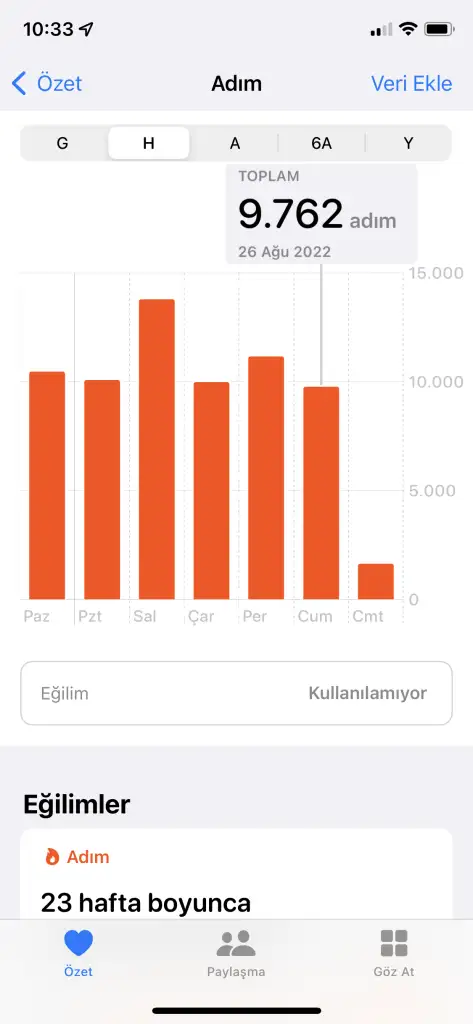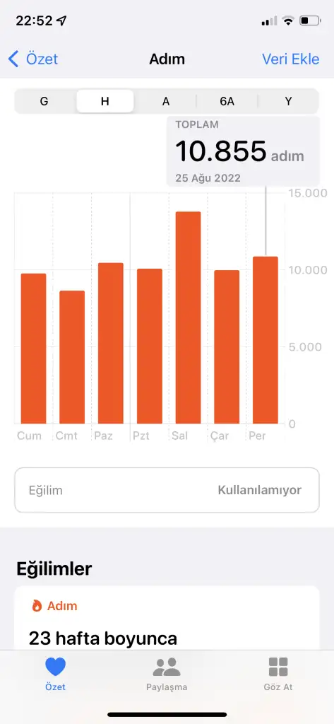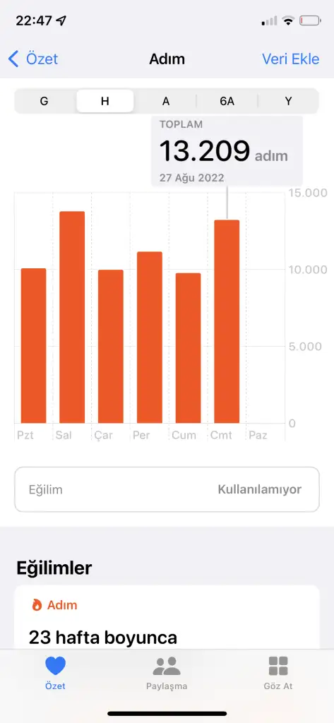 Öğlene kadar hiç oturmadım, akşam da yürüyüş koşuşturmaca derken 22500 adım atmışım. M MissHayaLet