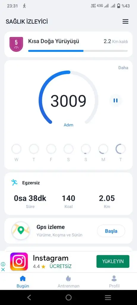 Spor 7 bin adım (koşu bandında yürümedim işlerim vardi)