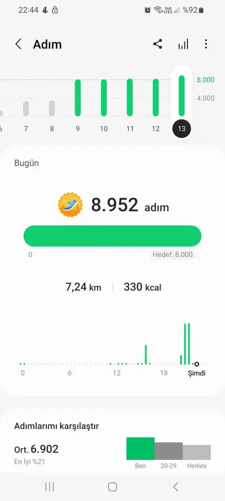 11,500Hergün 10 bin adım kesin oluyor bunu kendime görev bilyrm