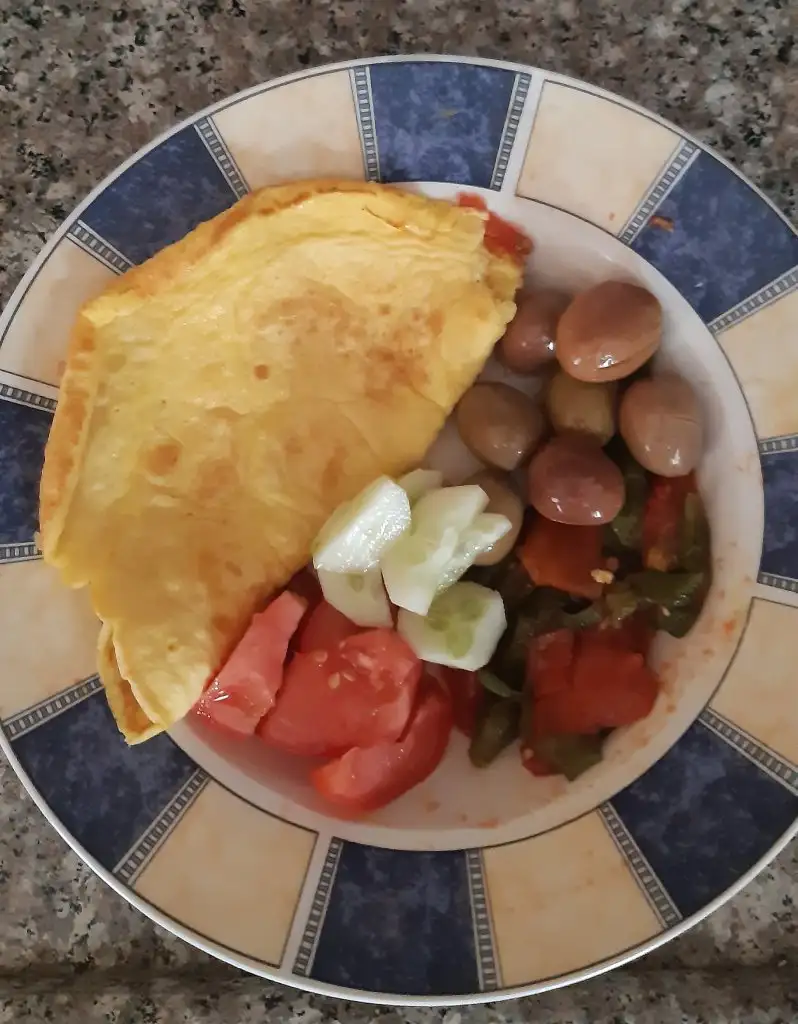 Kahvaltı ; sucuklu yumurta ,domates,peynir ,1/5 gözleme ,
