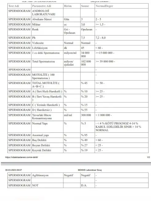 kızlar selam ben hastalandım ve adetli iken doktora gittim doktor vajidan muayene yaptı ve bir sıkıntı yok dedi. eşimden sperm testi istedi. anlayanınız varsa göndersem bakar mısınız ayrıca istersen bir daha ki ay adetten sonra gel rahim filmine bakalım dedi rahim filmi nasıl iyi mi kötü bir bilgim yok buradan okuduğum kadarını biliyorum. dönüş yaparsanız sevinirim.