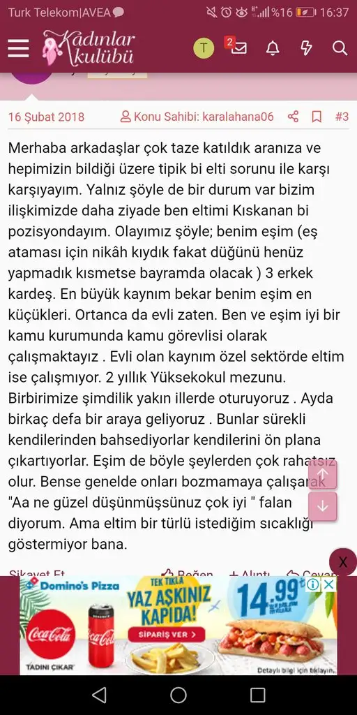 Kıskançlık durumunun geçtiğini ilerleyen konularda yazmıştım. O dönem hepiniz zor şeyler yaşamıştık. Velev ki sizin dediğiniz gibi olsun. Benim burada bu konuyu açma sebebim yeni doğum yapan birinin psikolojisinin vs nasıl olduğunu öğrenmekti. Nelere dikkat etmek gerektiğini yani.Yoo ben ilk başta naif cevaplarından dolayı sana hak veriyordum. Konularının hepsini bir oku kendin demişsin eltimi kıskanıyorum sürekli kendilerini övüyorlar, annesi bize laf sokuyor, çift maaşız diye kıskanıyorlar, kaynım yüksekokul mezunh vs vs demişsin. Biz bu konuları okuyana kadar sanki sadece abisi ile kaynının arası limoni gibi anlatmışsın. Bunun kötülükle alakası yok. Kıskandığınızı eltiniz de anlamıştır sizi samimi bulmuyordur. Üstüne de nevresimden kahve takımına kadar bir sürü şey almışsınız. İyi niyetle aldıysanız bile aileye yaranmaya çalıştığınızı düşünüyordur. Ki eşinize bile batmış bu durum.