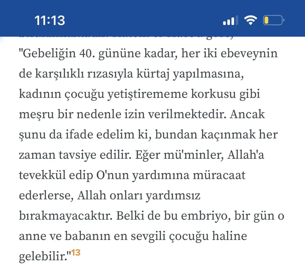 Ama bunu ben demedim sadece hemen hemen herkes aynı fikri soyluyo bence benim fikrimce ne kadar istenmesede yada zamanı olmasada ya korunacaktır bebek olmuyacak şekilde yada konu açıp yeni evliyim bebek var aldırmak dediğinde bence cinayet bu benim fikrim sen ne yaparsın seni ilgilendirir hayat senin banane ama doğru olan biseyi yanlış gibide gostermeyelim