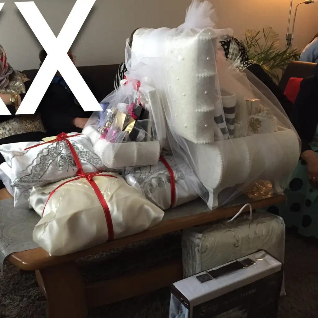 Geline iki sandigi, yerdeki yatak ortusuyle nevresimi, bide masanin bu tarafindaki kirik beyaz bohcayi hazirladik. Fotoda yok ama birde bavul goturduk, bitane kardesime aldik bitanede geline takim olsun bavullari diye.