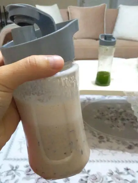 "süt, siyah erik, fındık, keten tohumu,tarcin li smoothie"