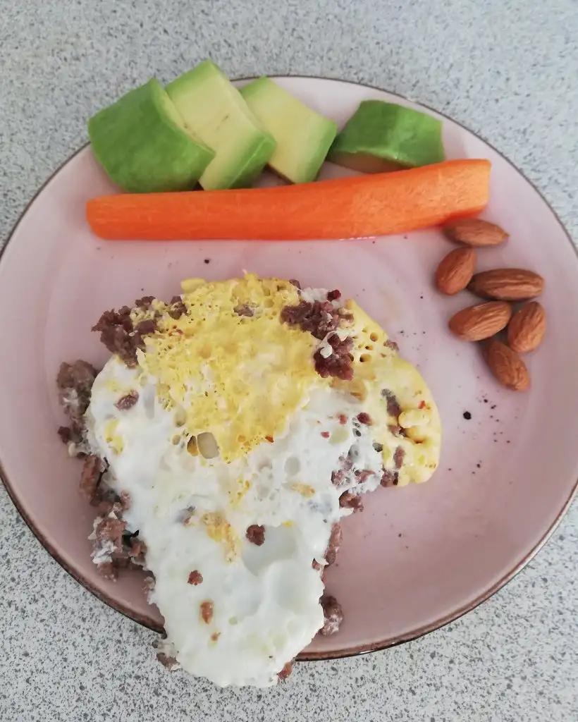 1 yumurtadan omlet, ceri domates, salatalik, biber, 1 dilim kepek ekmegi, 1 kk light beyaz peynir, 2 bardak sekersiz cay.