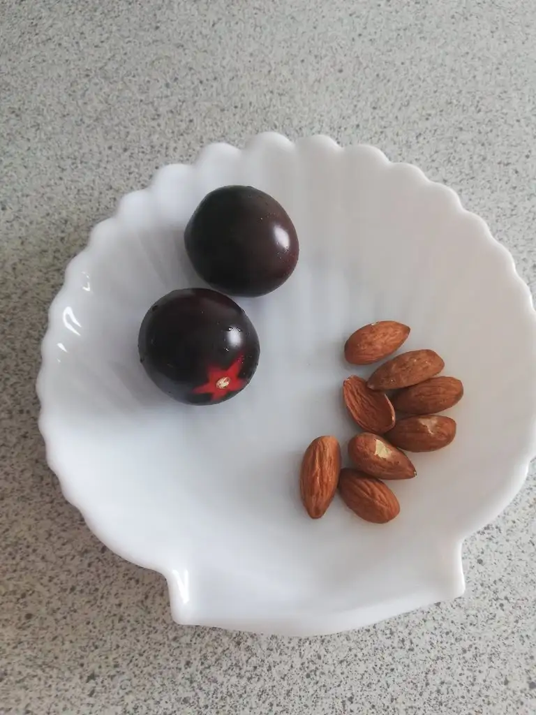 Ara: bir dilim ananas uzerine tarcin serptim, 1 ceviz , 4 badem, sekersiz turk kahvesi.