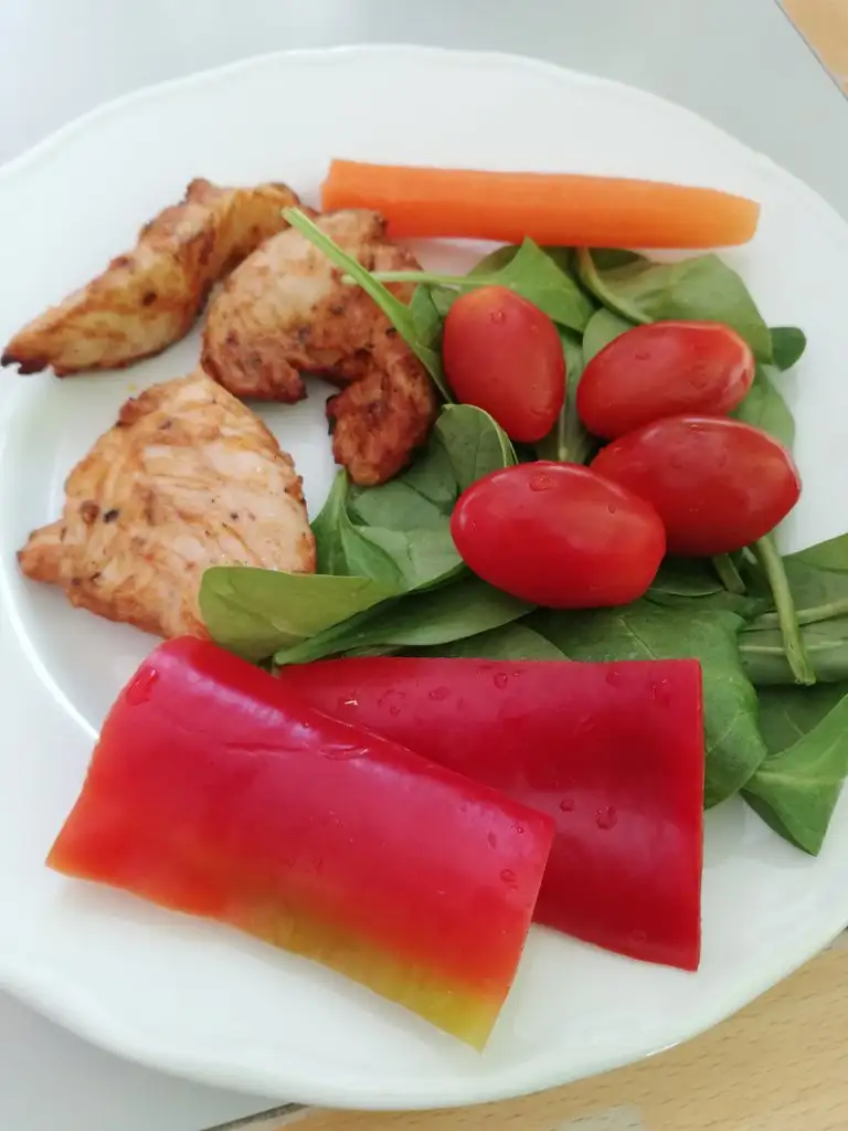 3 kofte, 1 kase kivircik salata domates ve salatalikli, 3 yemek kasigi karnabahar ve brokoli.