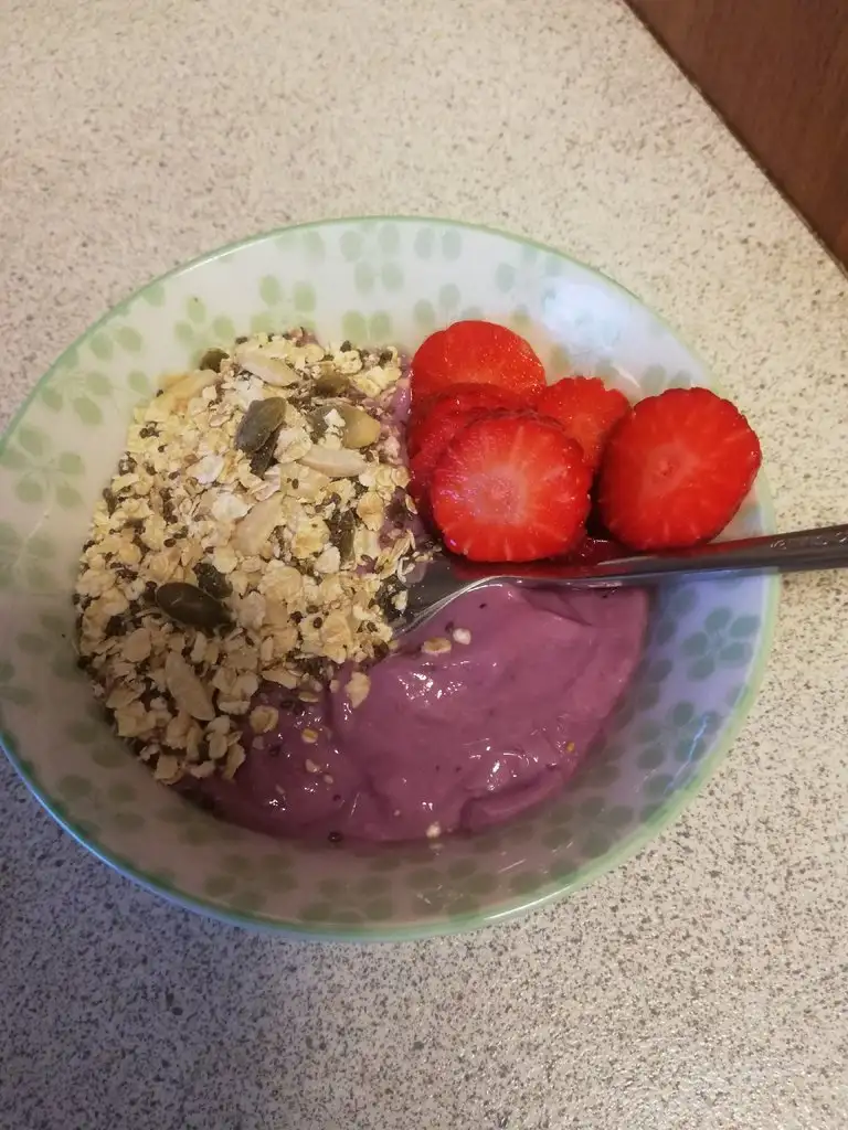 Soyadan yapilmis yogurt, cilek, kendi karisimim olan musli