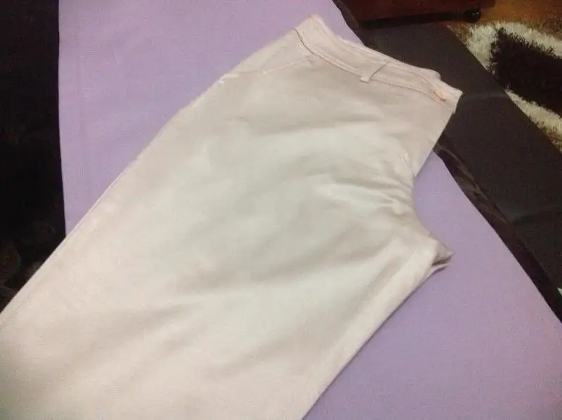 Harika bir pantolon....pudra rengi.....satenimsi bir kumaşı var hafif parlıyor....ama çokkk tarz bişi