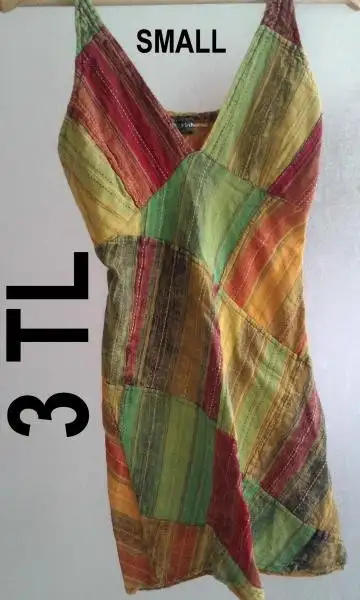 rengarenk incecik kumaş tunik, xl yazıyor ama s-m-l bedene olur diye düşünüym bana biraz bol o yuzden satışta sadece 5 tl