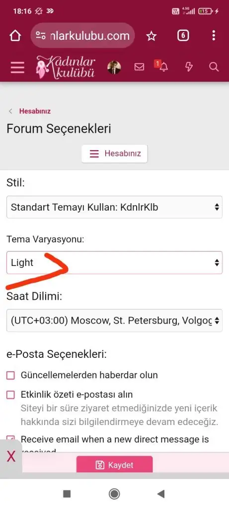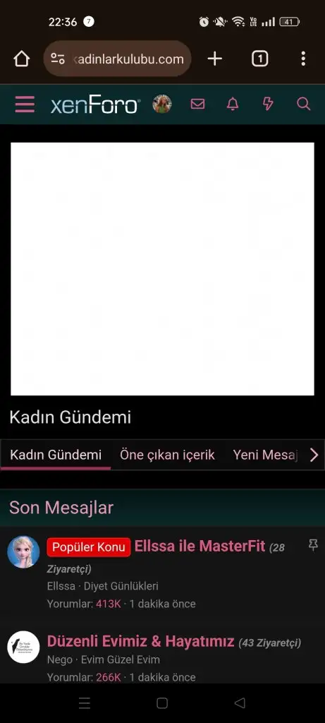 Cok tesekkür ederim sonunda kendime geldim.Profilinize tıklayın Forum seçeneklerine basın, sonra temadan LİGHT seçin ekran beyaza döner düzelir