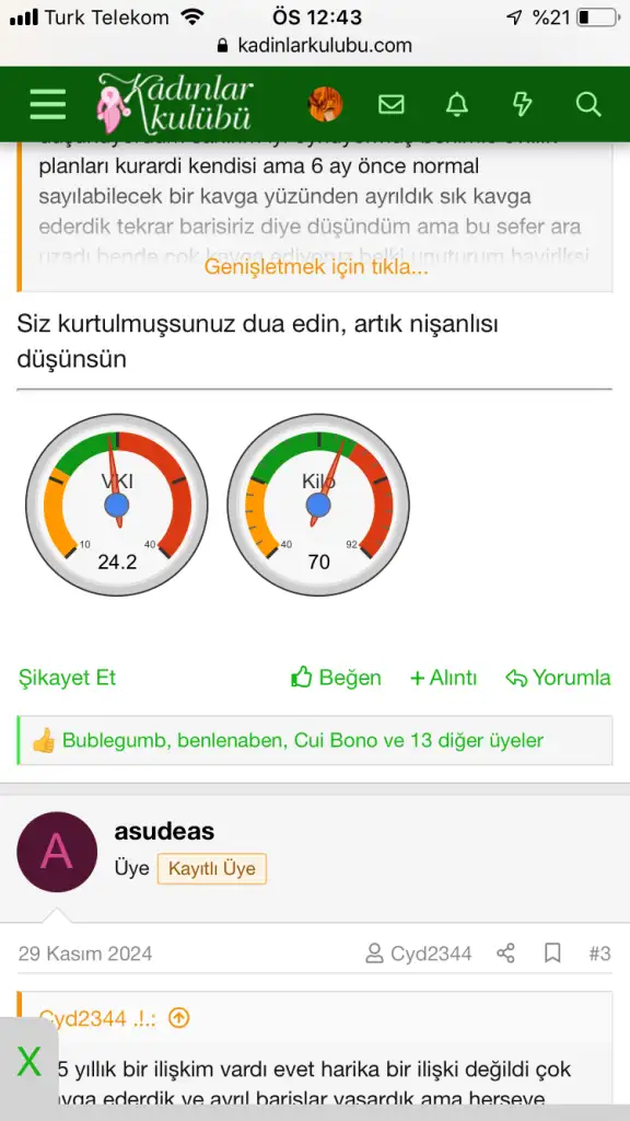 Üyelerin kilo, hamilelik gibi bilgileri yazdıkları her mesajlarının altında gözüküyor. Bunları kendimiz ayarlardan kapatabilirsek çok iyi olur. Üye isterse göstersin ama biz tercihe bağlı o bilgilerini görmeyi kapatabilelim. Bir konuya bakarken o şekilde bilgileri görmek benim dikkatimi dağıtıyor.Mune Ablam biliyorum çok sıkıldın yoruldun ama bişey demek istiyorum yorumların altında böyle şeyler çıkıyor konularda Eki Görüntüle 3531713 Eki Görüntüle 3531714