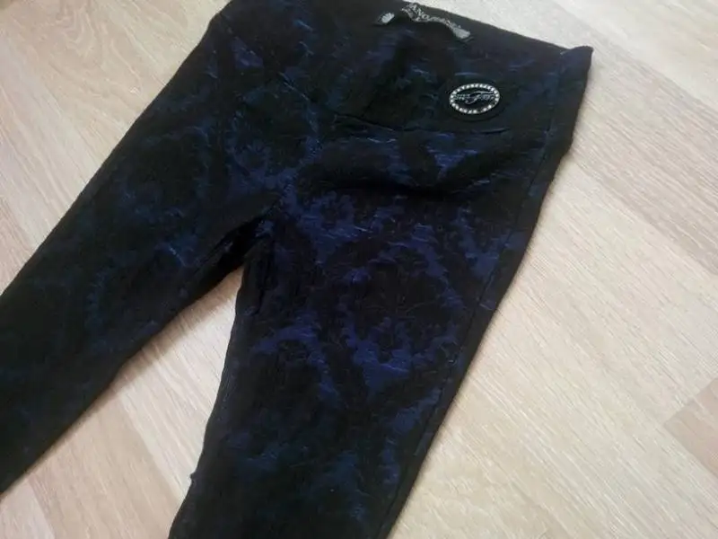 Saks mavi üzerine siyah jakarli pantalon tayt sadece 20 tl