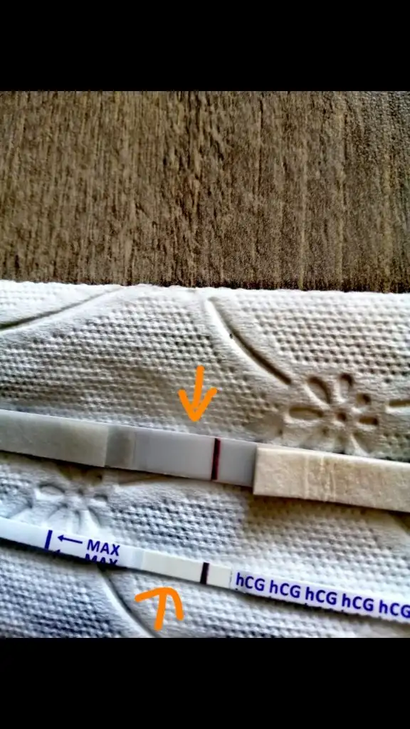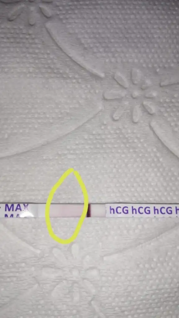 Fotoğrafa dikkatli bakınca gorunuyo ama çok çok silik. Ayrıca yerleşme kanaması açık pembe renktede olabilir. Bikac gün bekleyip adet gelmezse testi tekrar etsin bence