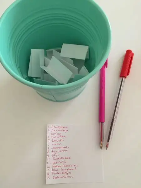 Yukarda foto paylaştım her isim için kovadan bir kagıt cekcem