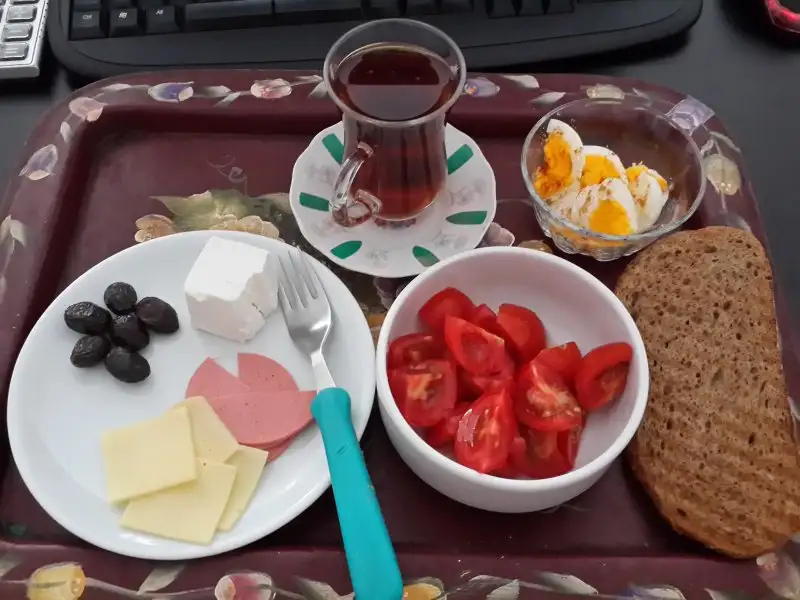 Sahurda 2 h.yumurta, 1 bardak süt, domates, salatalık 1 dilim ekmek yedim