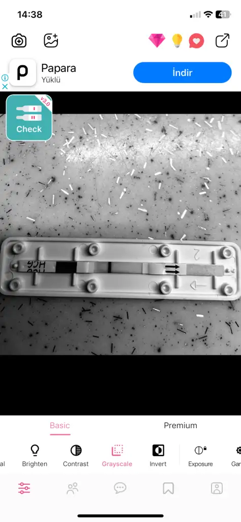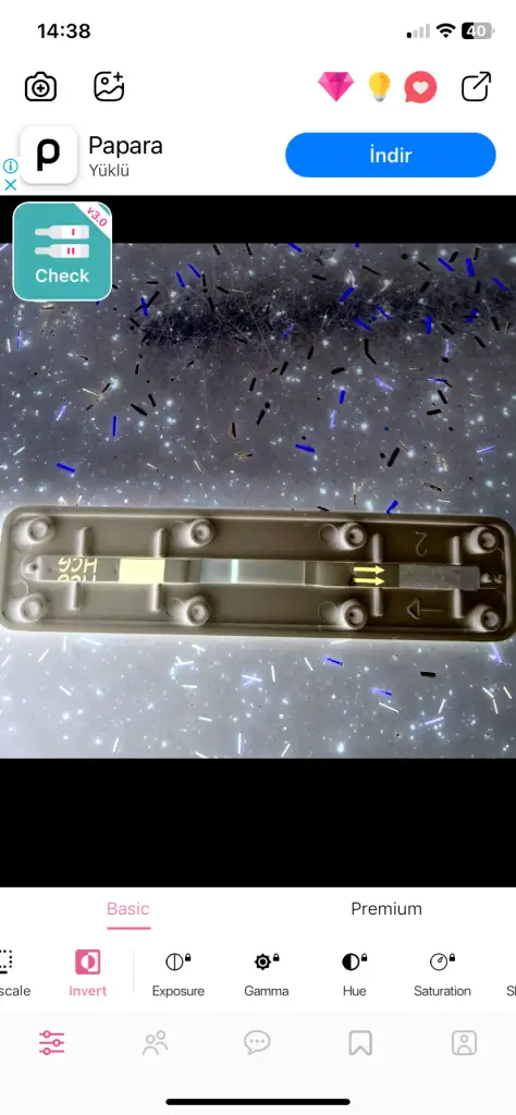 Kuzum bnde laboquik çıkarmıştı 7 gün kala, ama okdr belirsizdiki ben yatagın üstune çıkıp avızeye dayayıp bakıyordumAdetime 7 gün var laboquik test aldım deneyim dedim dünden beri kuruma bile hiç çıkartmadı az önce yaptım belli belirsiz karartı vardı bekledikten sonra daha da belirgin olsun foto çekince belli olmuyor diye efekt yaptım beklemiş hali ama bu kızlar ama daha önce beklediğimde bile bişey göremiyordumTikabasa Niqu